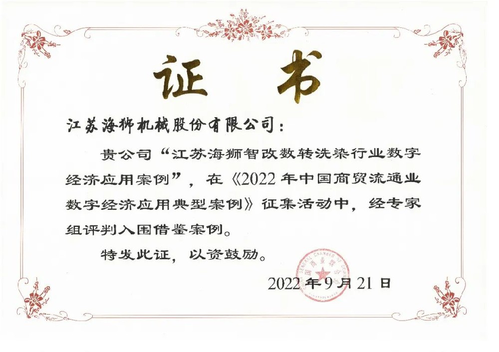 洗滌視界發(fā)布的第777篇原創(chuàng)文章總第219期前言2022年7月,江蘇海獅機(jī)械股份有限公司(下文簡稱海獅)在第十二屆中國輕工業(yè)信息化大會(huì)上榮獲“2022年中國輕工業(yè)數(shù)字化轉(zhuǎn)型先進(jìn)單位”表彰,董事長陳宏榮獲“2022年中國輕工業(yè)數(shù)字化轉(zhuǎn)型領(lǐng)軍人物”榮譽(yù)稱號(hào)。8月,中國輕工業(yè)百強(qiáng)企業(yè)高質(zhì)量發(fā)展高峰論壇上,海獅在發(fā)布的中國輕工