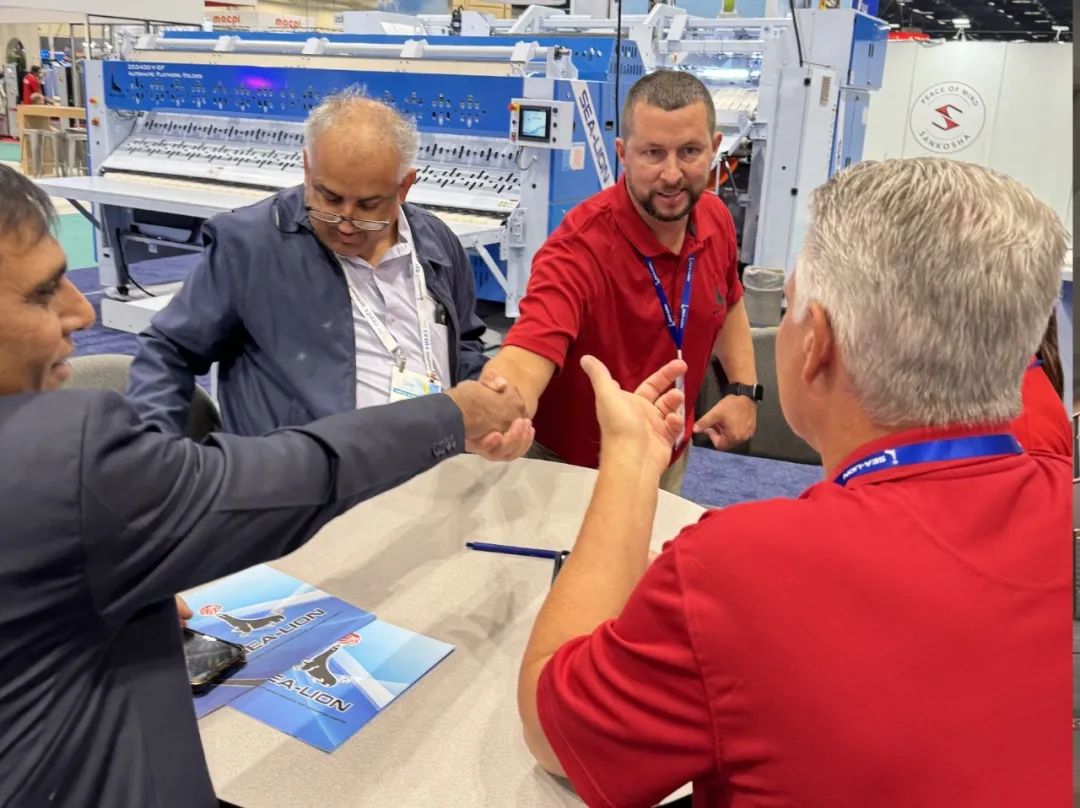 在海外布局方面,海獅機(jī)械依托其美國(guó)分公司,深入了解第一手北美客戶的訊息以及需求痛點(diǎn)。展會(huì)現(xiàn)場(chǎng),眾多客戶與海獅機(jī)械美國(guó)公司工作人員積極交流,分享客戶案例,并就具體合作場(chǎng)景、技術(shù)適配需求等展開深入探討。