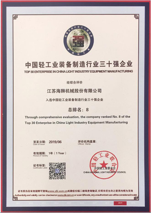 會(huì)議宣讀了中國輕工業(yè)百強(qiáng)企業(yè)評(píng)價(jià)公告,同時(shí)為中國輕工業(yè)百強(qiáng)企業(yè)頒發(fā)牌證,江蘇海獅機(jī)械股份有限公司作為洗滌行業(yè)領(lǐng)先企業(yè),榮獲了“中國輕工業(yè)裝備制造行業(yè)三十強(qiáng)企業(yè)”、“中國輕工業(yè)科技百強(qiáng)企業(yè)”稱號(hào),同時(shí),在洗滌機(jī)械行業(yè)十強(qiáng)企業(yè)排在首位。